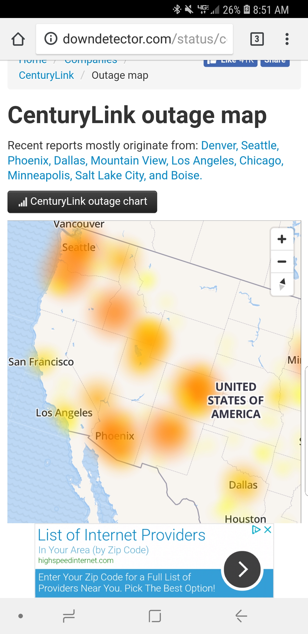 We have data centers in Los Angeles, Phoenix and Washington DC. If down detector detects an internet outage between your office and your datacenter, that could cause packet loss.